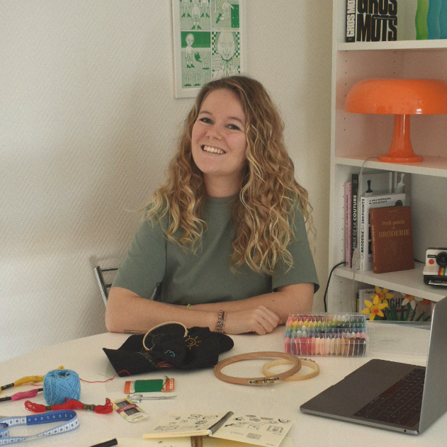 Et oui, tous les vêtements et accessoires que je propose sont de seconde-main et brodés par moi-même à Toulouse. Je chine minutieusement chaque pièce, puis imagine et réalise les broderies à la main.